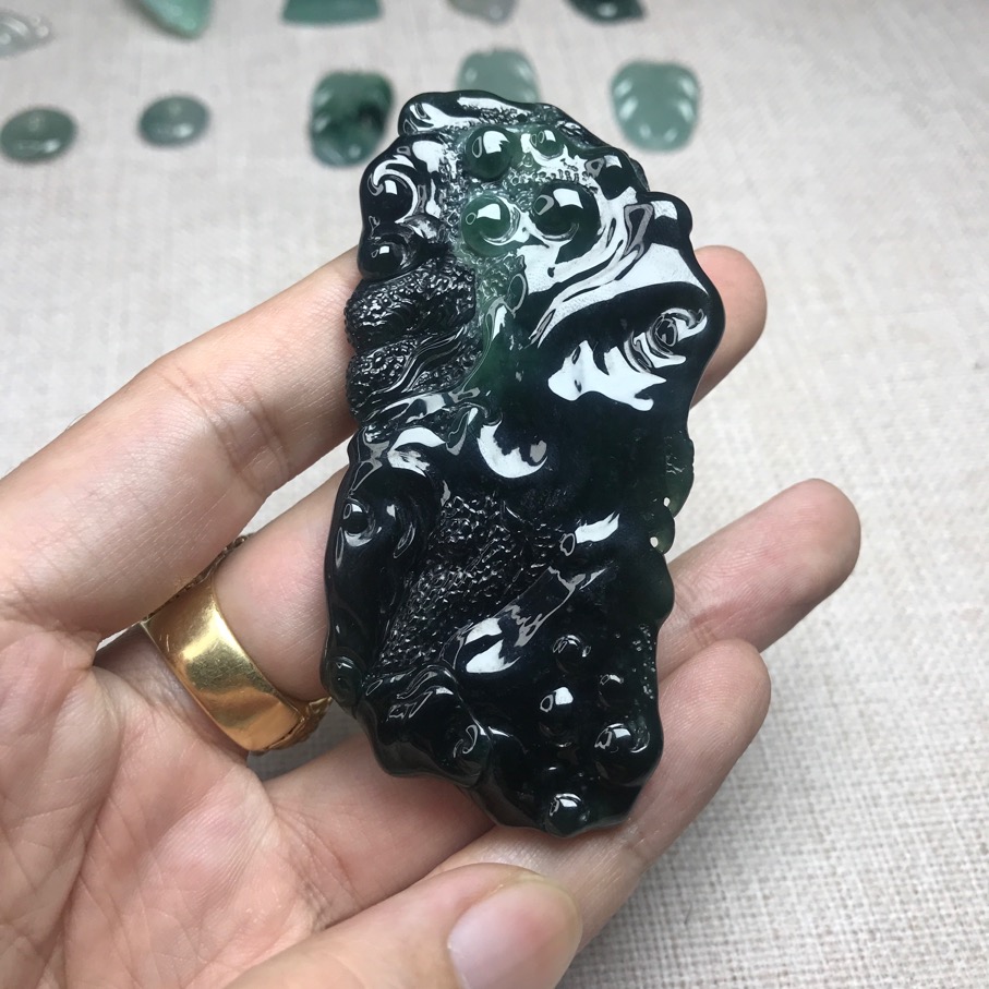 • [名  称] 糯种墨翠翡翠辰龙吊坠