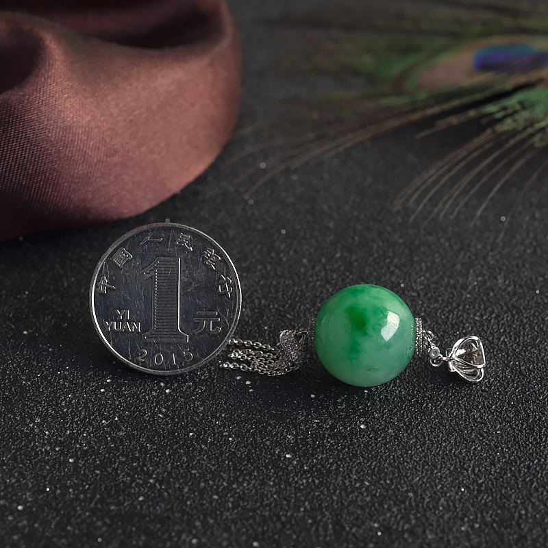 • 18K糯种飘翠翡翠圆珠吊坠