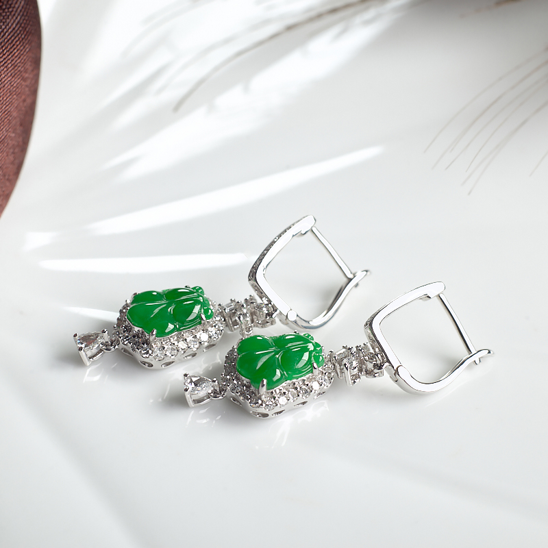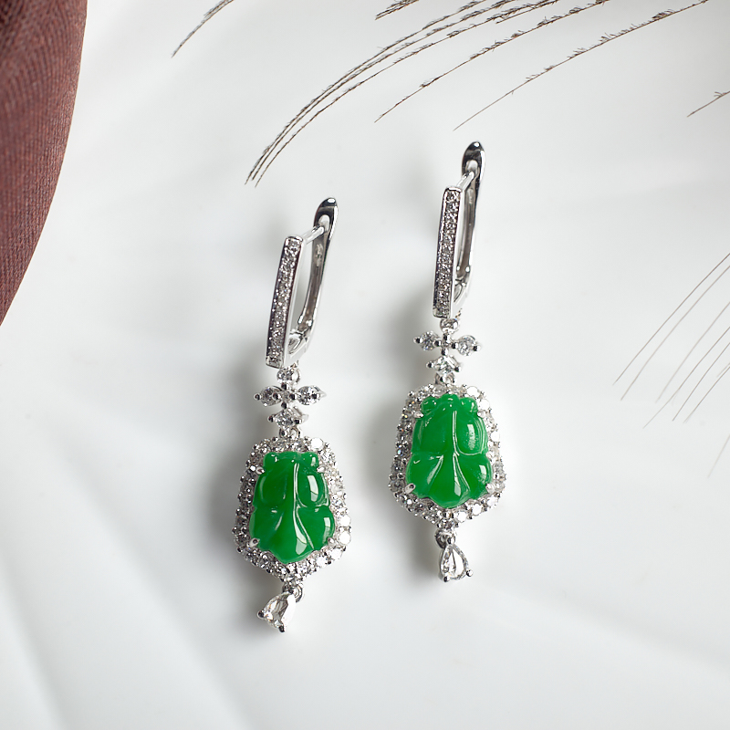 • [名  称] 18K糯种翠绿翡翠金鱼耳坠