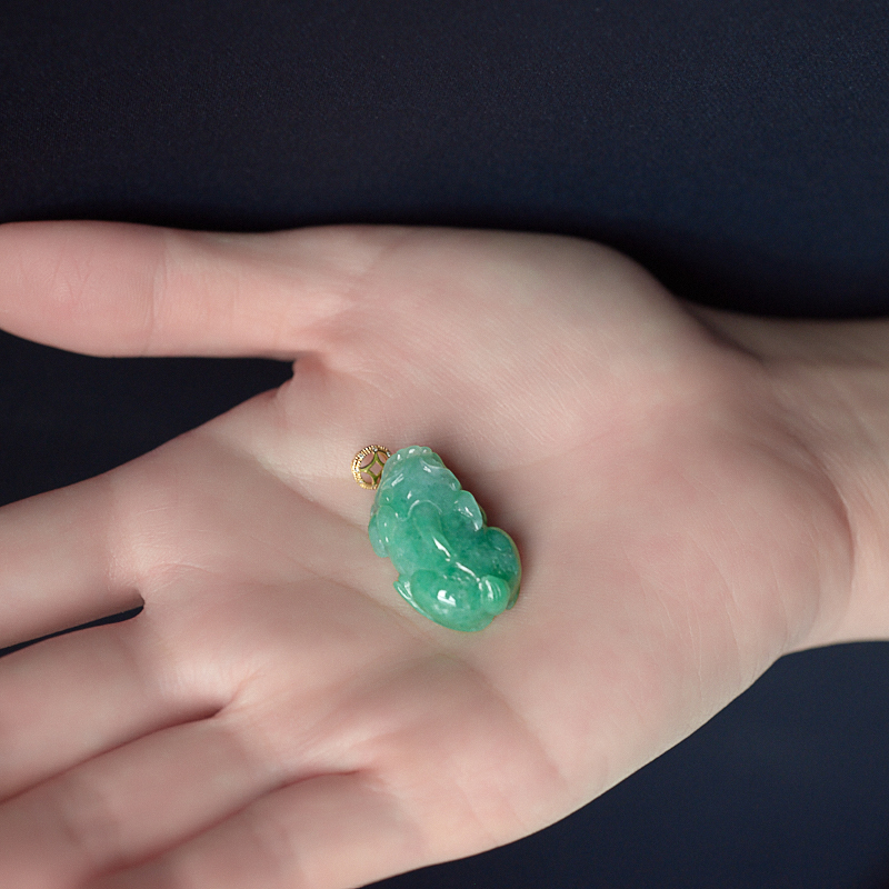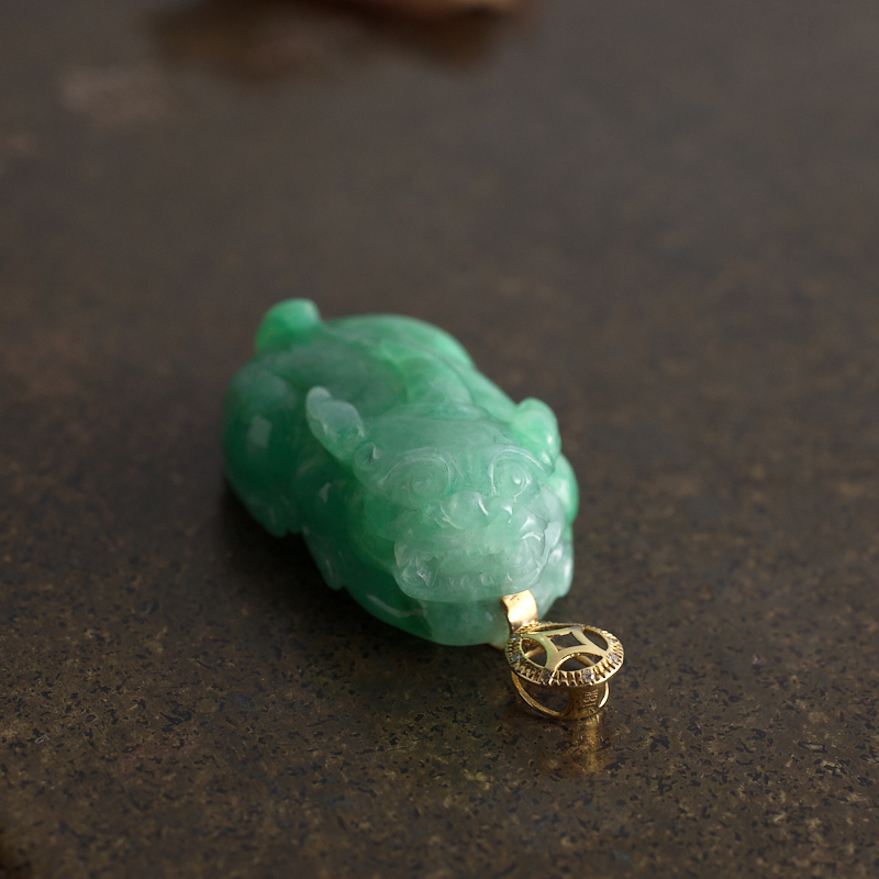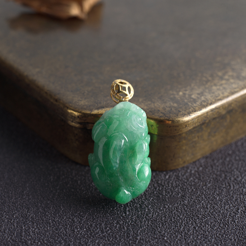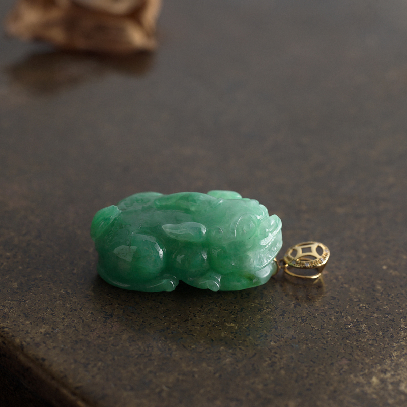 • [名  称] 18K糯种豆绿翡翠貔貅吊坠