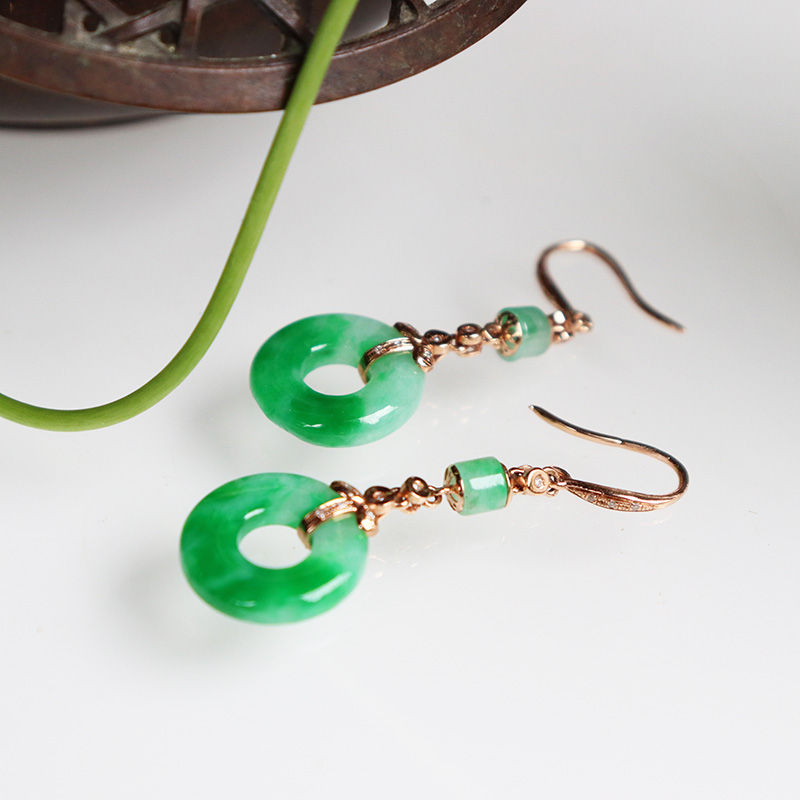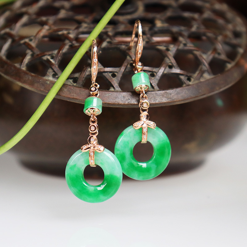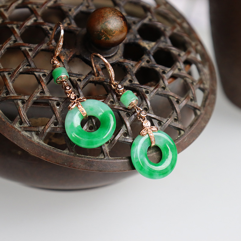 • [名  称] 18k糯种翠绿翡翠平安环耳坠