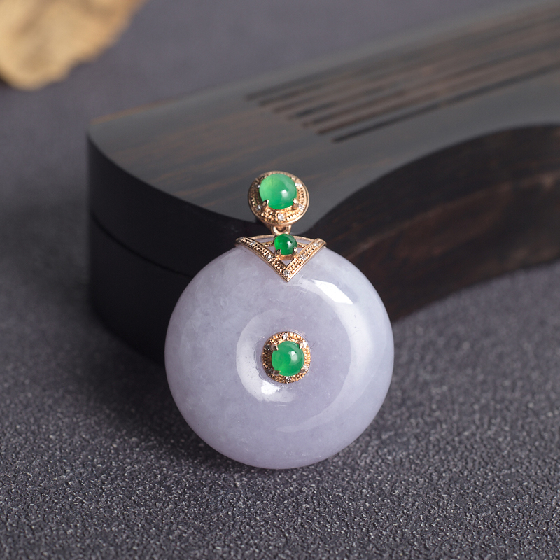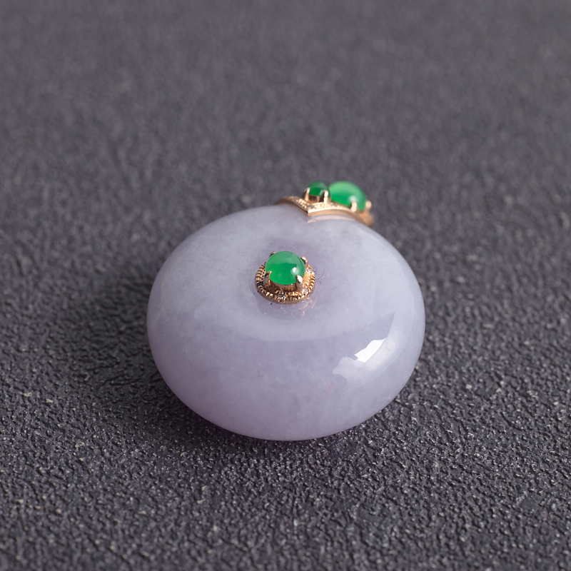 • 18K糯种紫罗兰翡翠平安扣吊坠