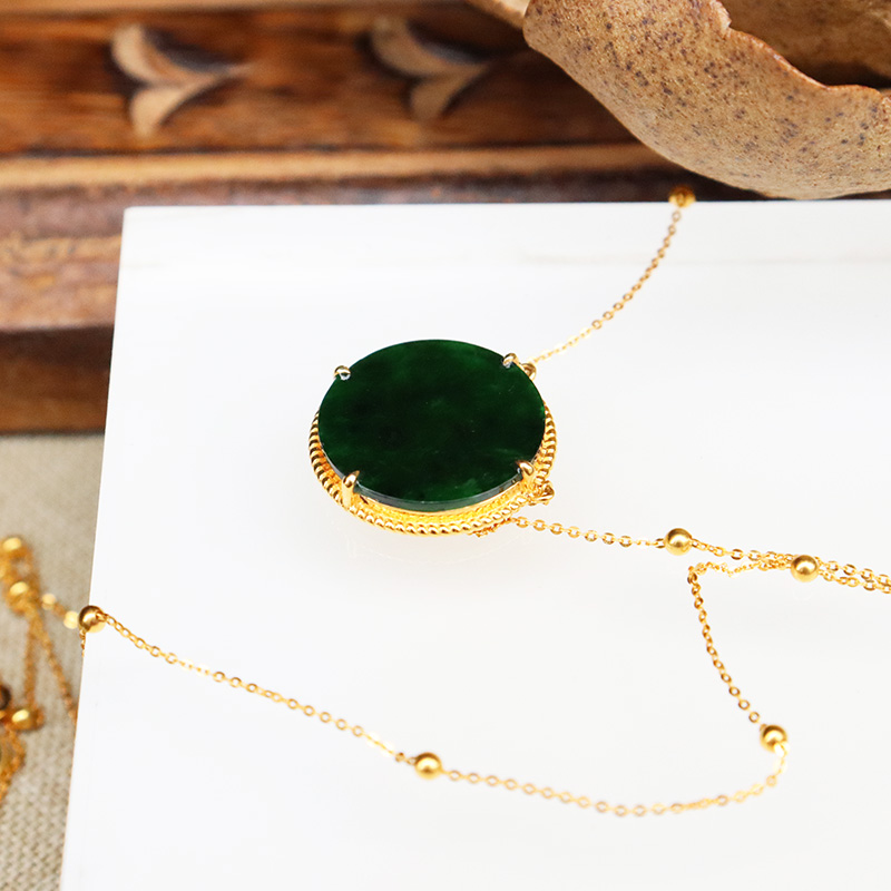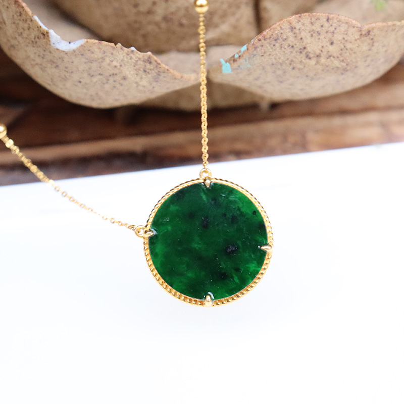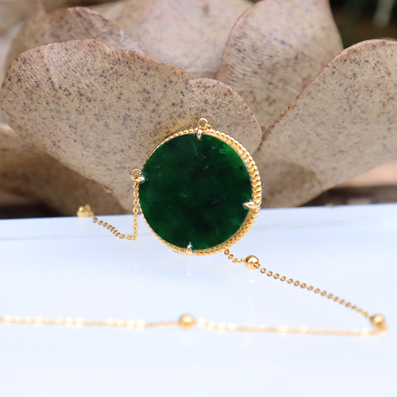 • [名  称] 18k糯种深绿翡翠无事牌锁骨链