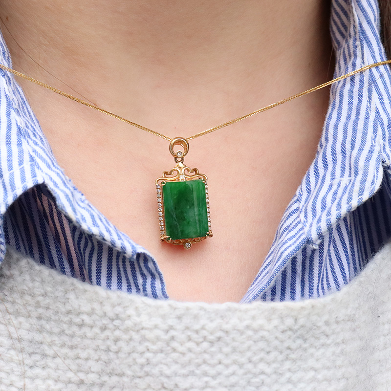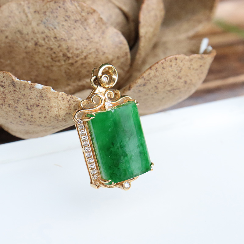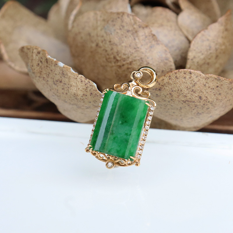 • 18k糯种翠绿翡翠无事牌吊坠
