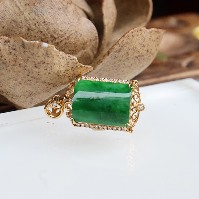 • [名  称] 18k糯种翠绿翡翠无事牌吊坠