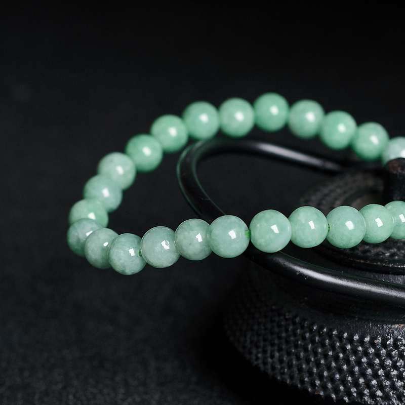 • [名  称] 6.5mm糯种豆绿翡翠单圈手串