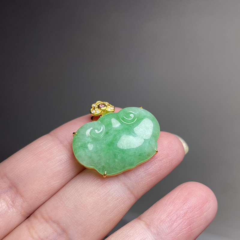 • [名  称] 18K糯种翠绿翡翠如意吊坠