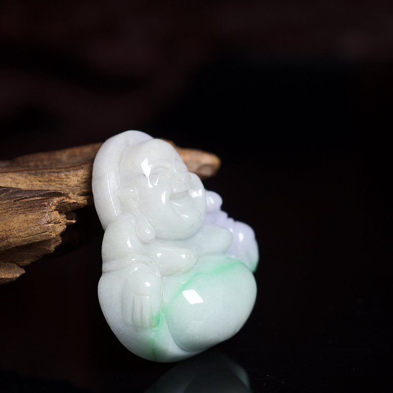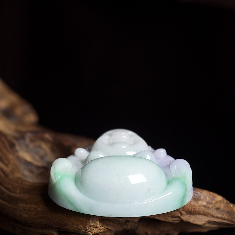 • 糯种春带彩翡翠弥勒佛吊坠