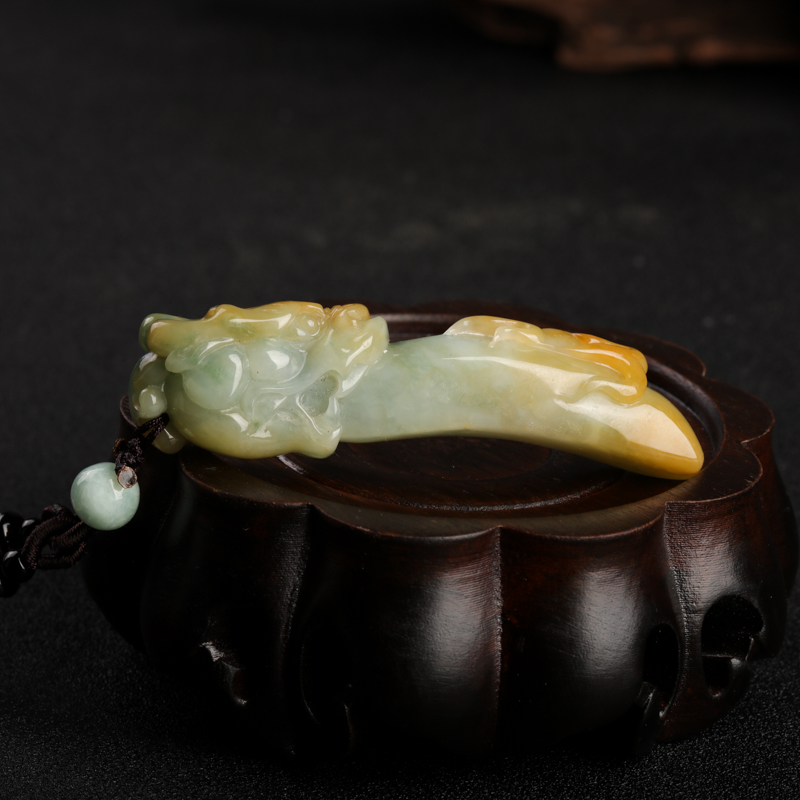• 缅甸糯种俏色翡翠龙吊坠-红掌柜