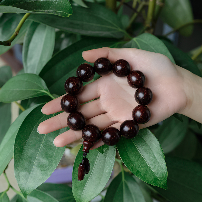 • 20.5mm满星鸡血红小叶紫檀单圈手串