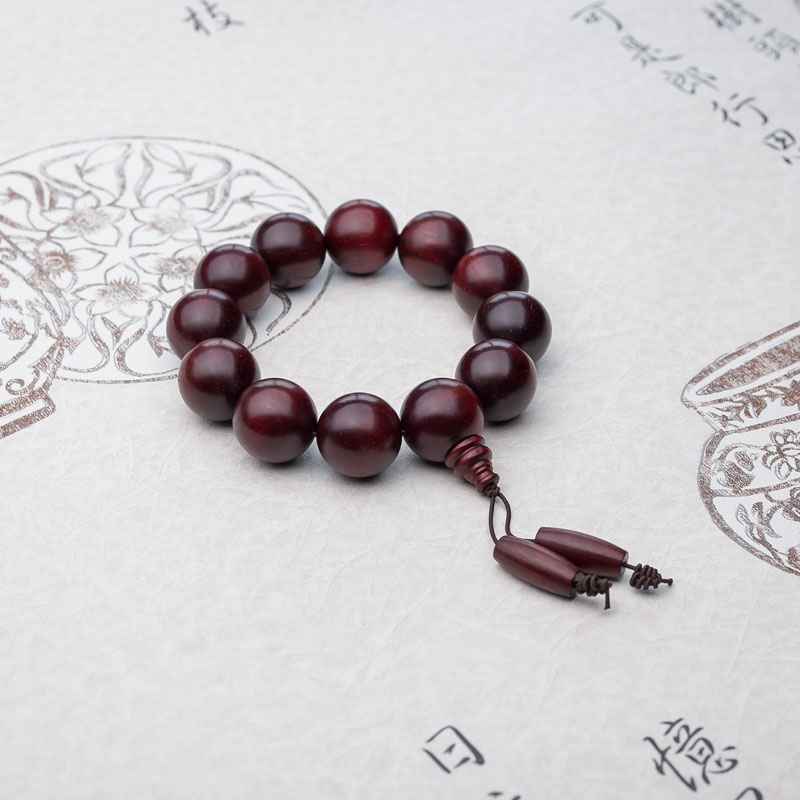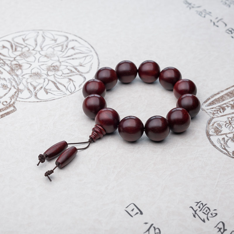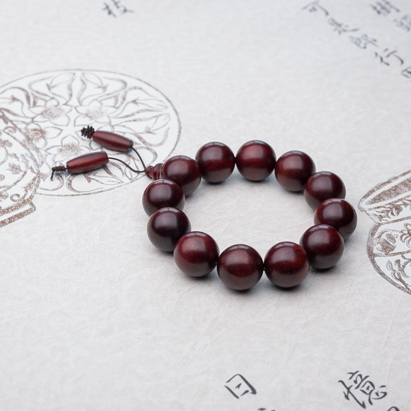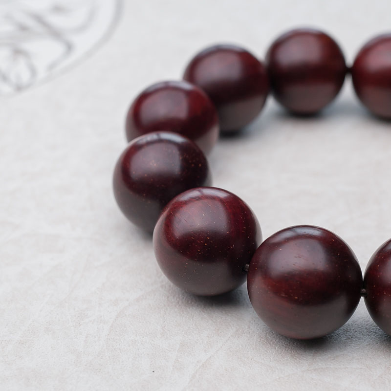 • 21mm半星小叶紫檀鸡血红单圈手串