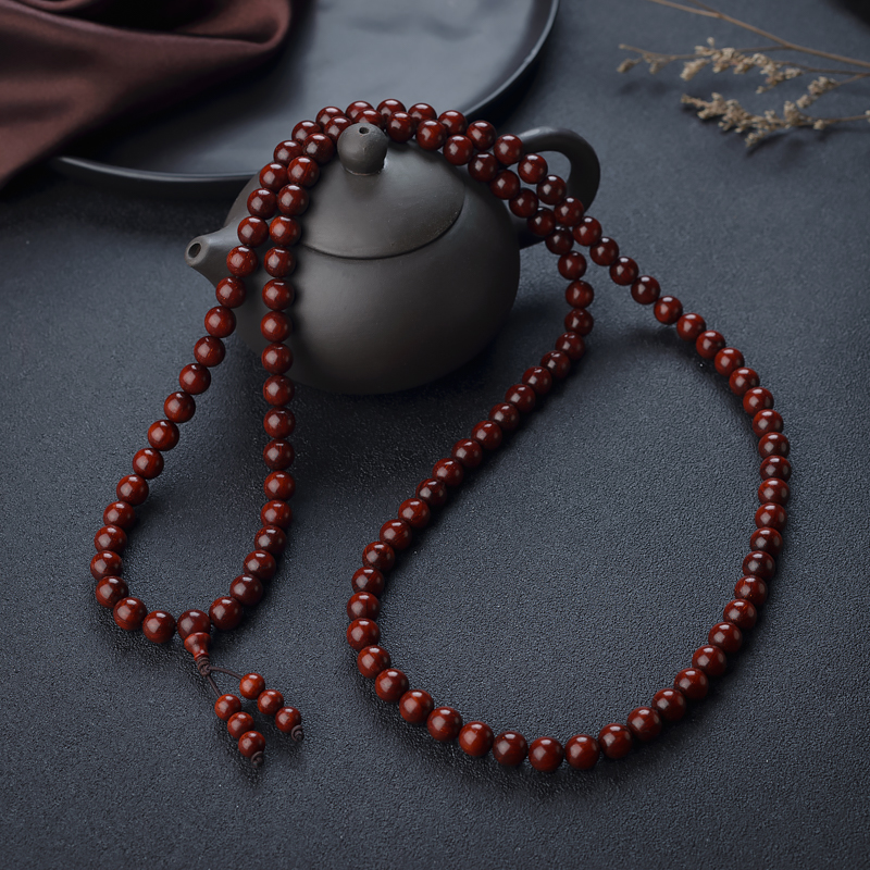 • [名  称] 8mm满星鸡血红小叶紫檀108佛珠