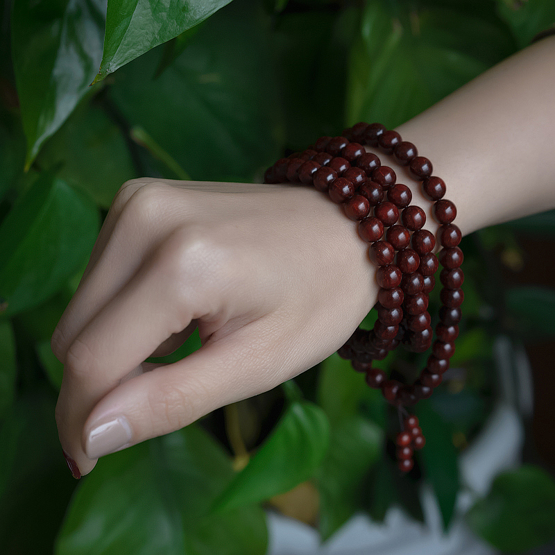 • 8mm满星鸡血红小叶紫檀108佛珠