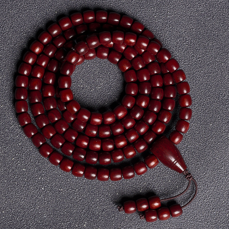 • 半星鸡血红小叶紫檀桶珠多圈手串