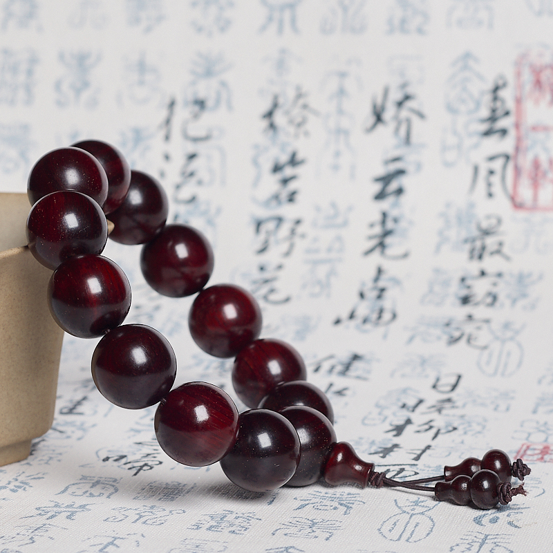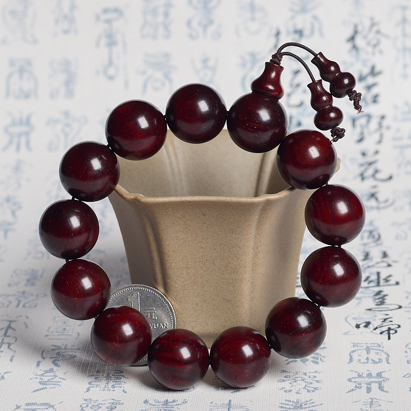 • 18mm半星鸡血红小叶紫檀单圈手串