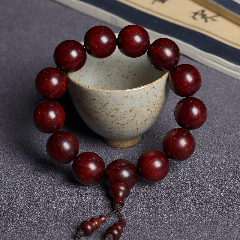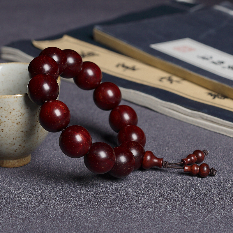• 18mm满星鸡血红小叶紫檀单圈手串
