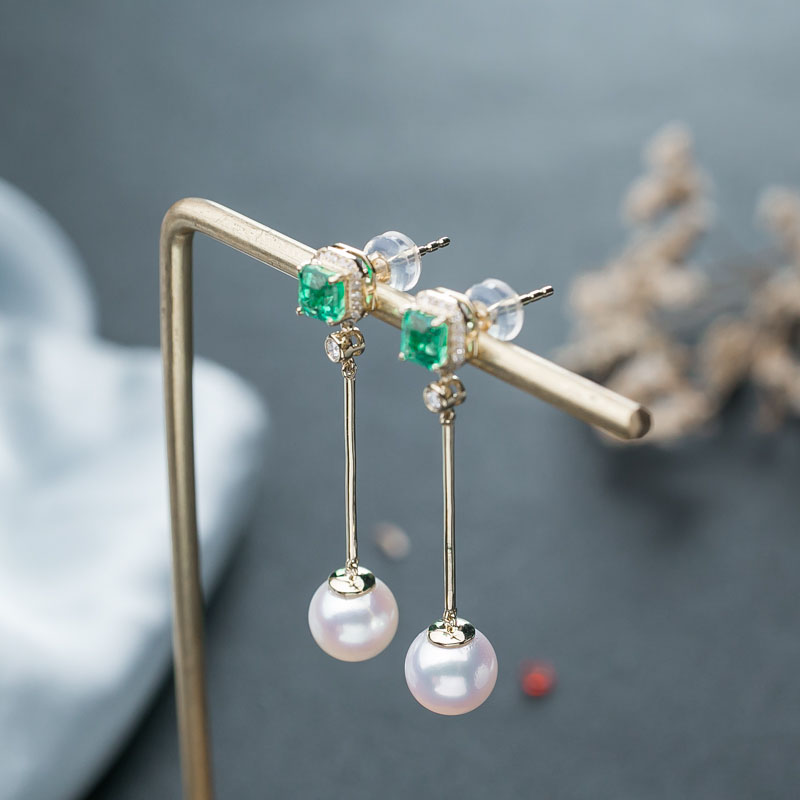 主石长4.1mm宽3.8mm厚1.9mm,珍珠珠径8.1mm