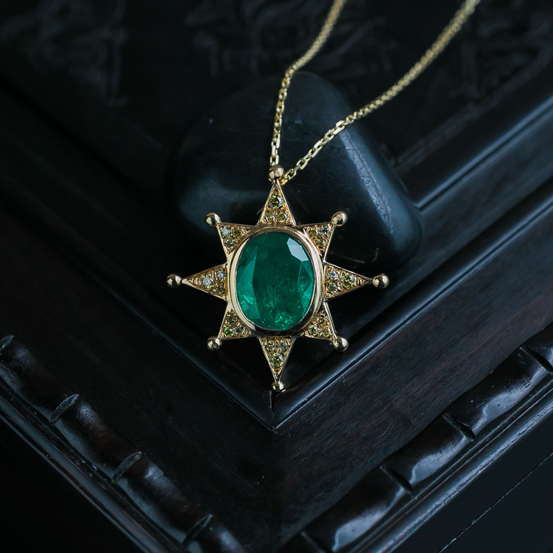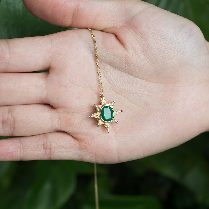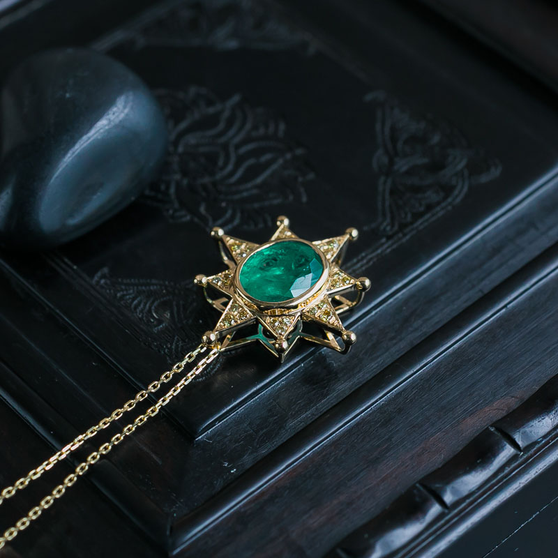 • 18K鲜绿祖母绿吊坠