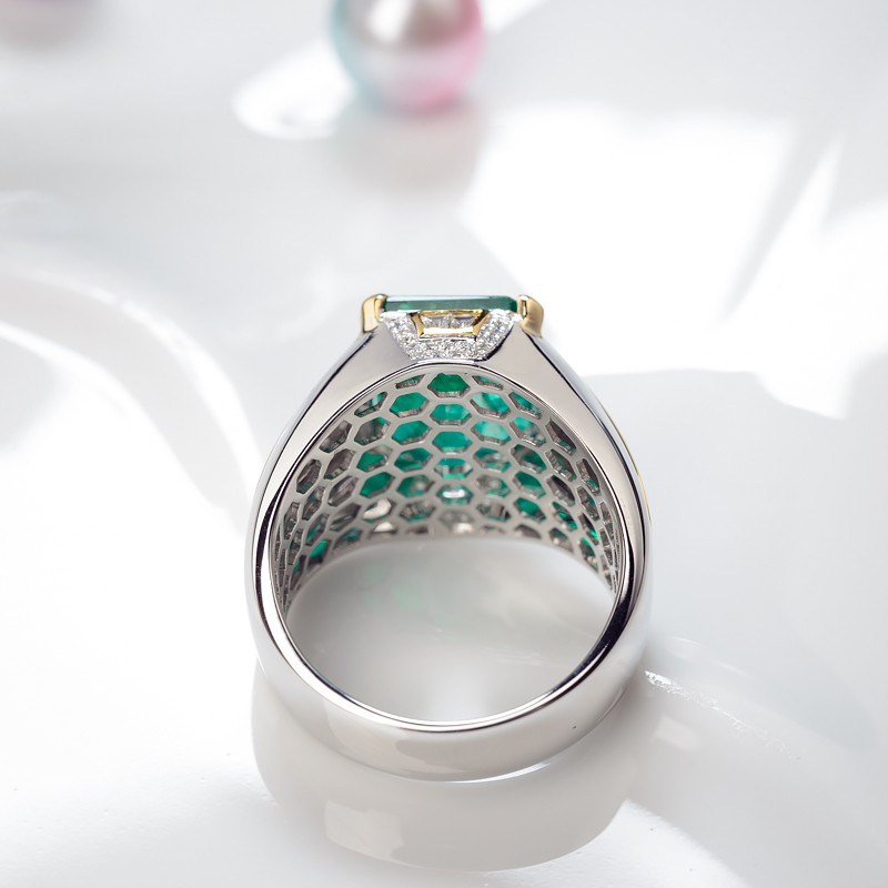 为了让珠宝的价值得到更大程度的体现,每一个作品都是根据料子本身做专业的设计,让每件作品都有灵魂。设计好以后会根据设计创意做专业的镶嵌或雕刻,确保每个接口都严丝合缝,每一刀都流畅自如