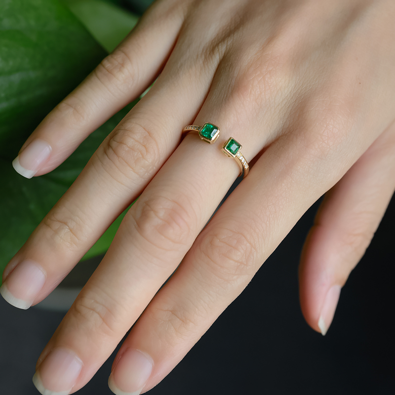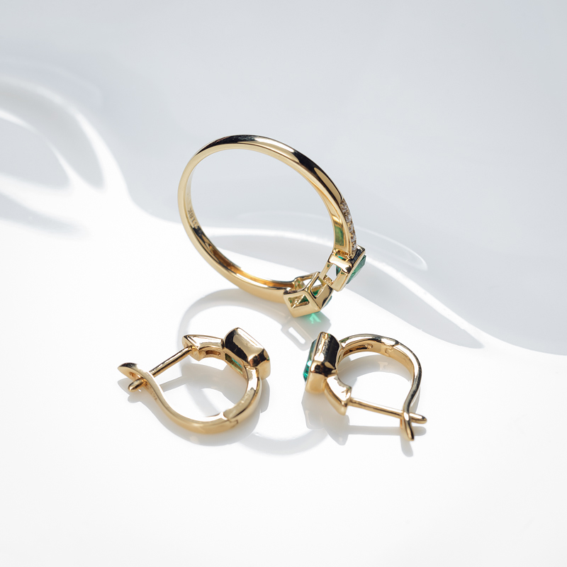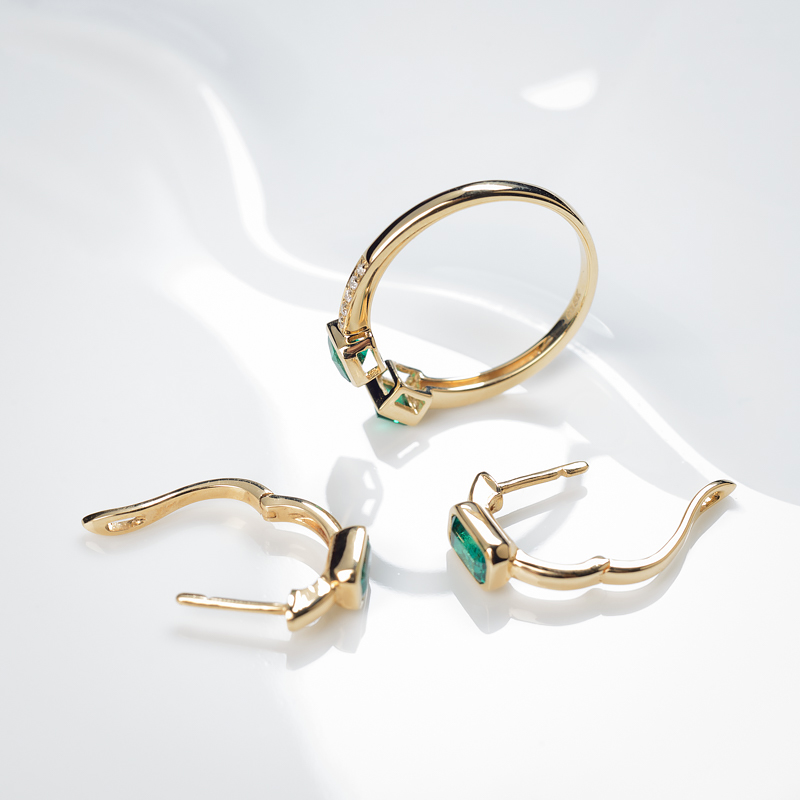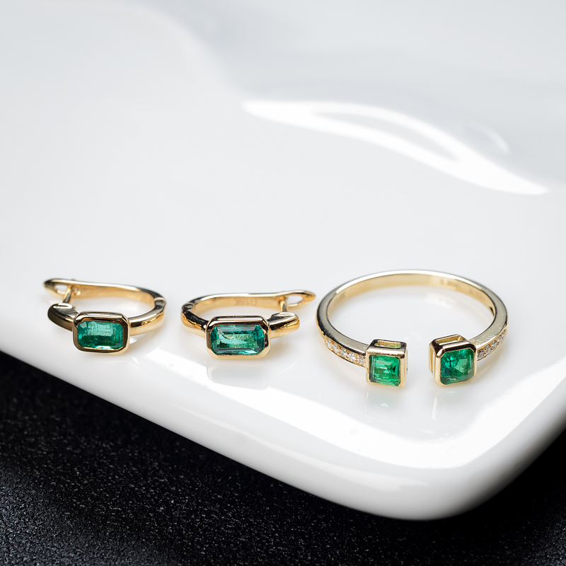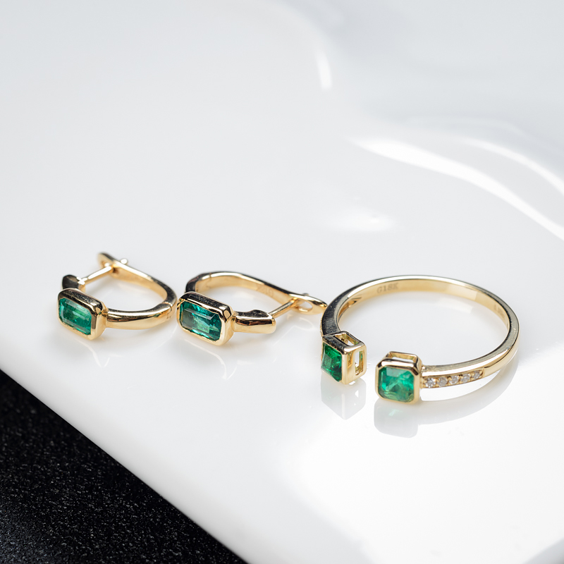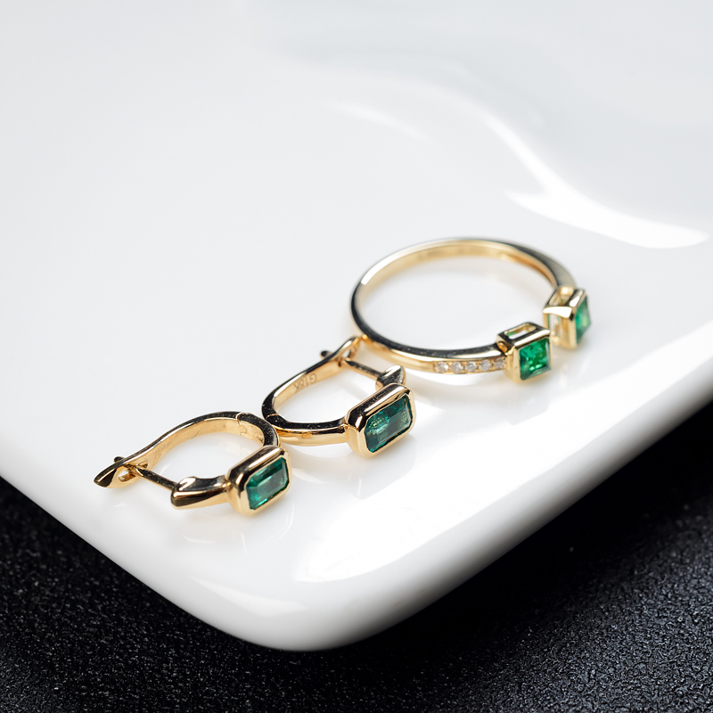 • [名  称] 18K鲜绿祖母绿戒指/耳环套装