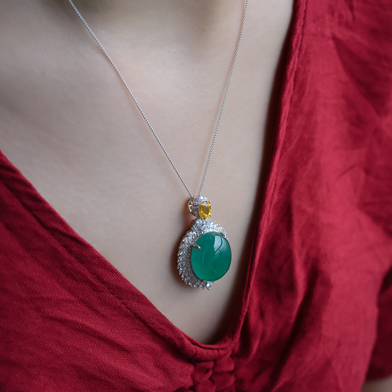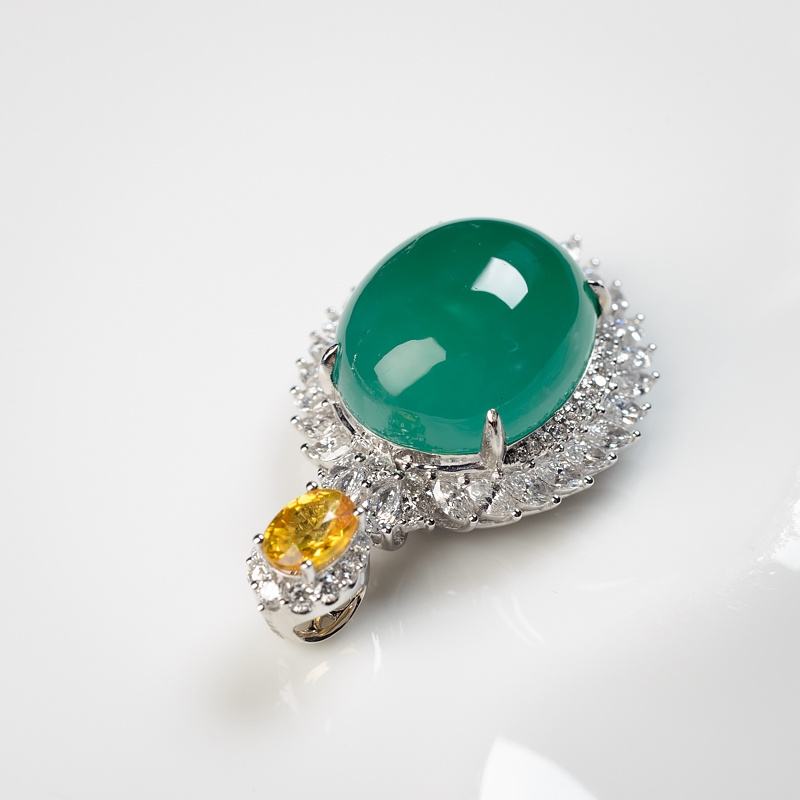 • 18K鲜绿祖母绿蛋面吊坠
