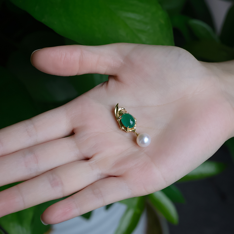 主石长9.5mm宽7.5mm厚3.7mm珍珠珠径8.5mm