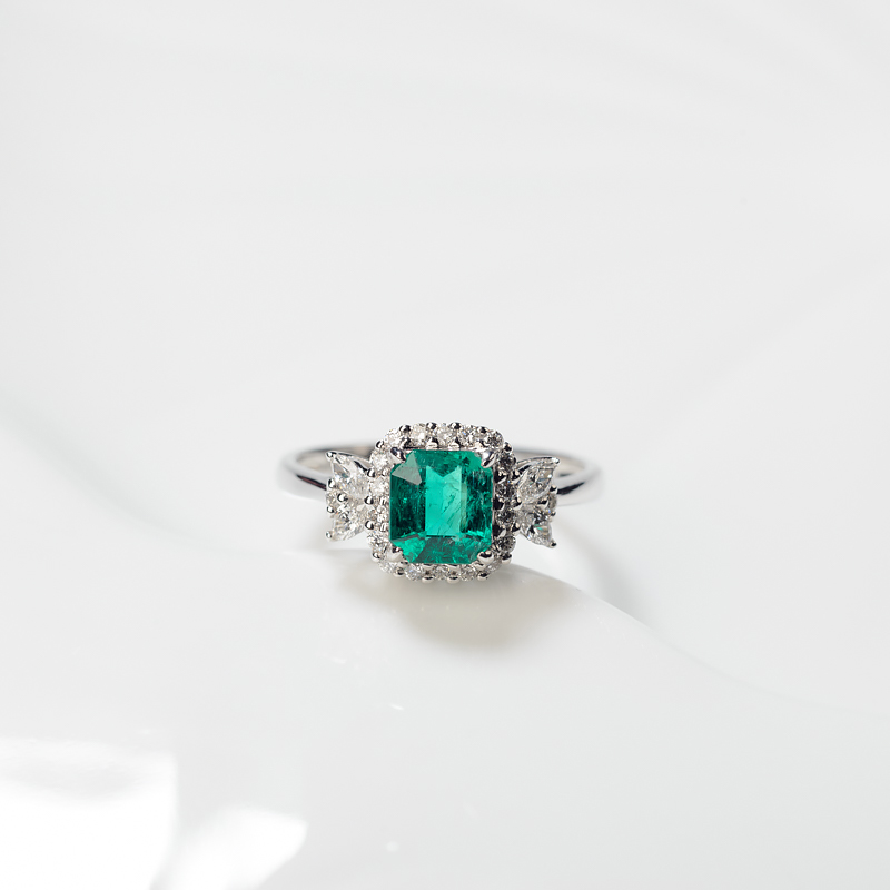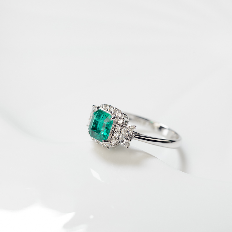 • [名  称] 18K鲜绿祖母绿方形戒指