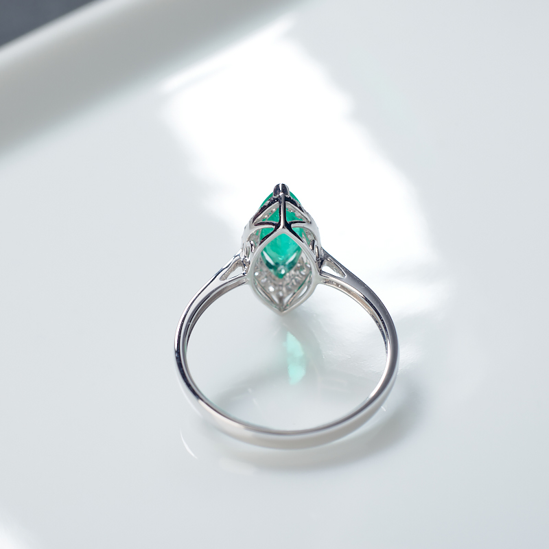 • [名  称] 18K鲜绿祖母绿马眼形戒指