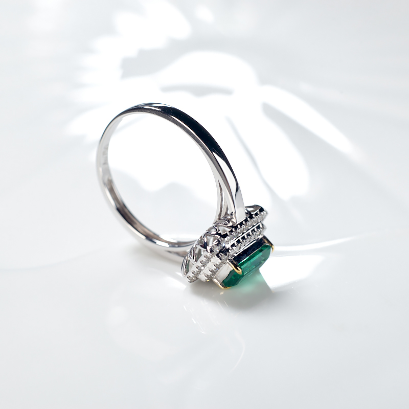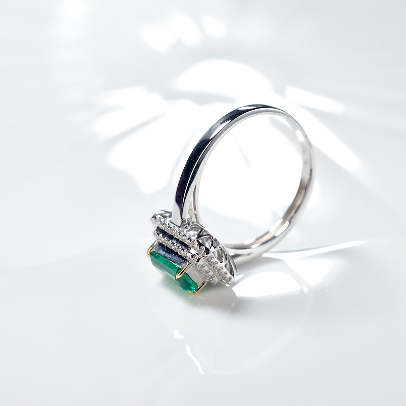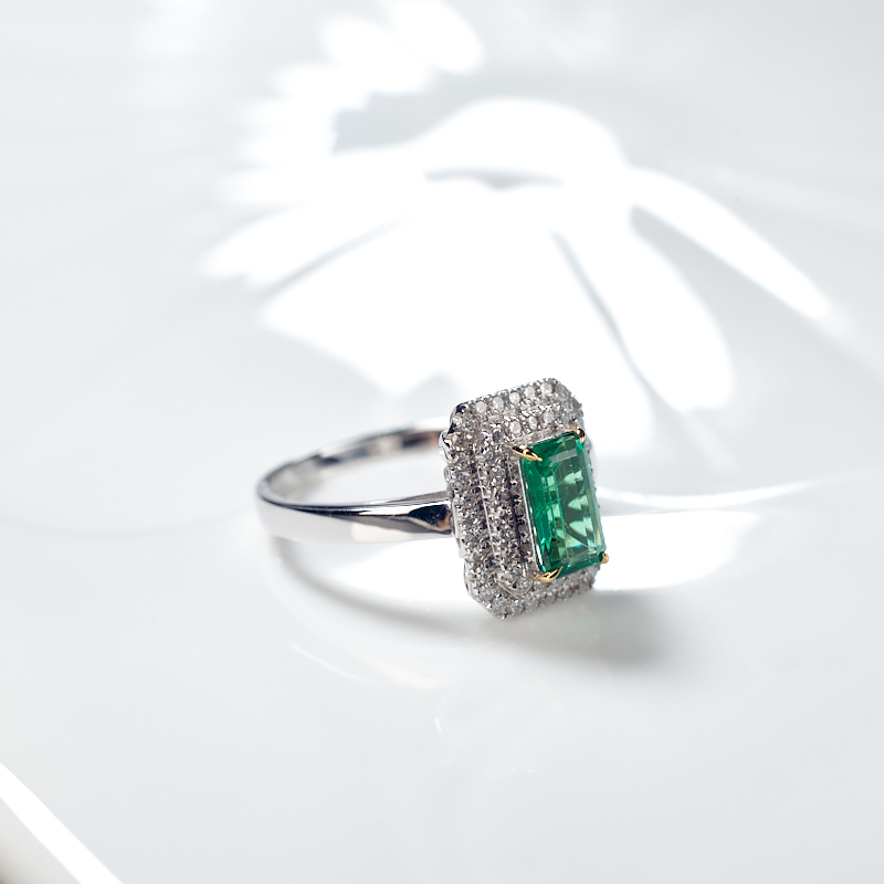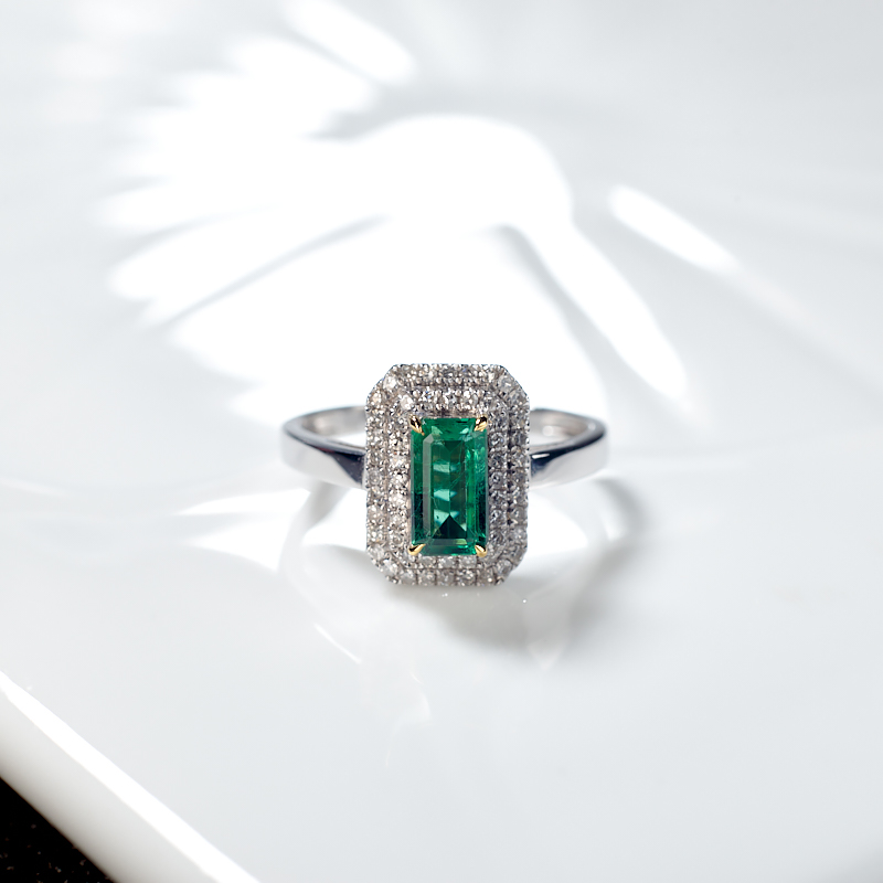 • [名  称] 18K鲜绿祖母绿方形戒指