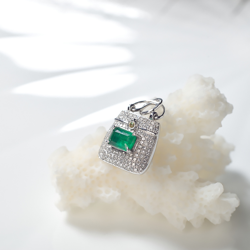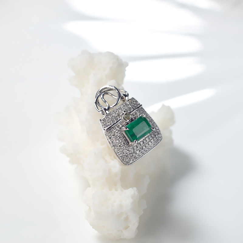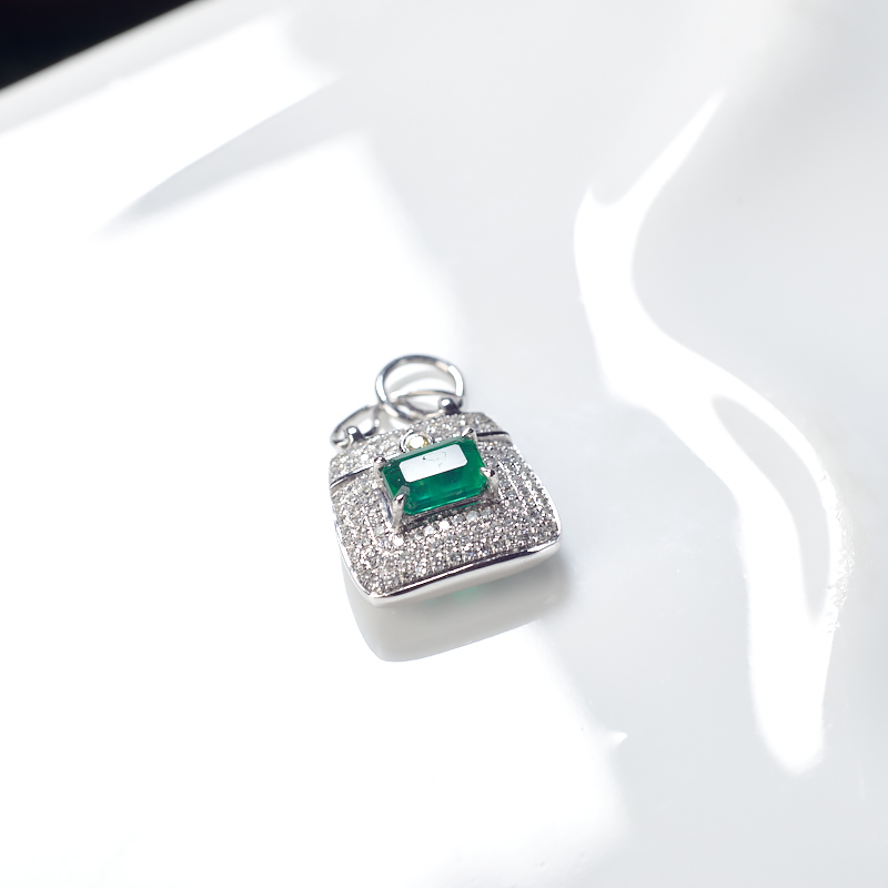 • [名  称] 18K鲜绿祖母绿包包吊坠