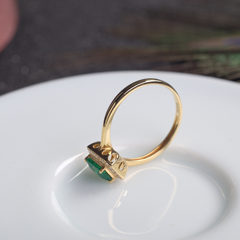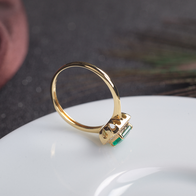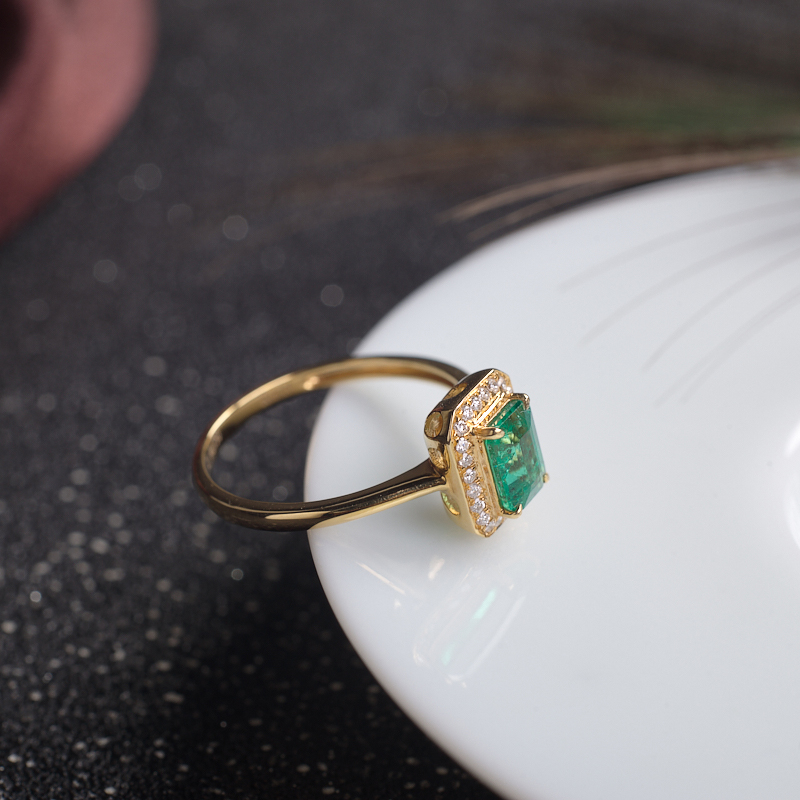 • [名  称] 18K鲜绿祖母绿方形戒指