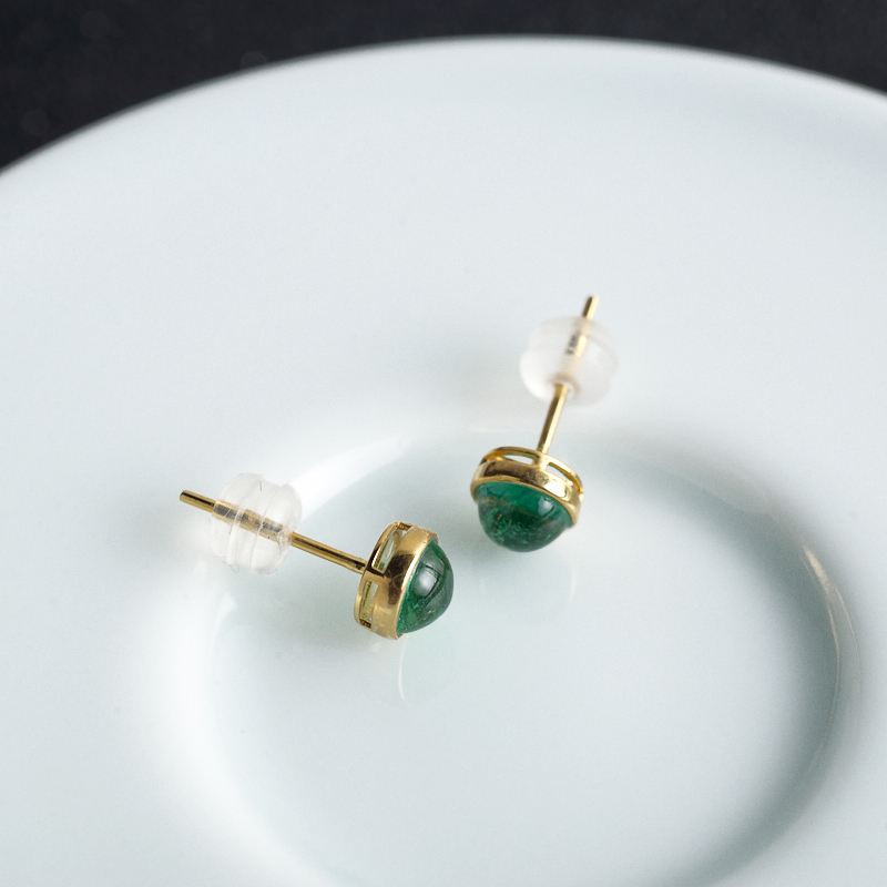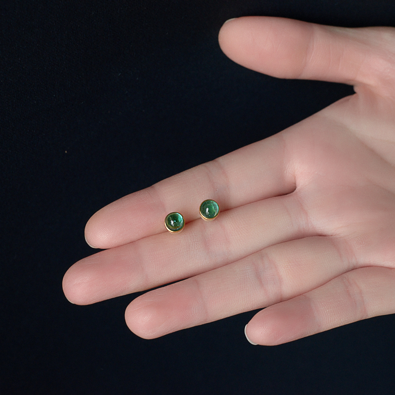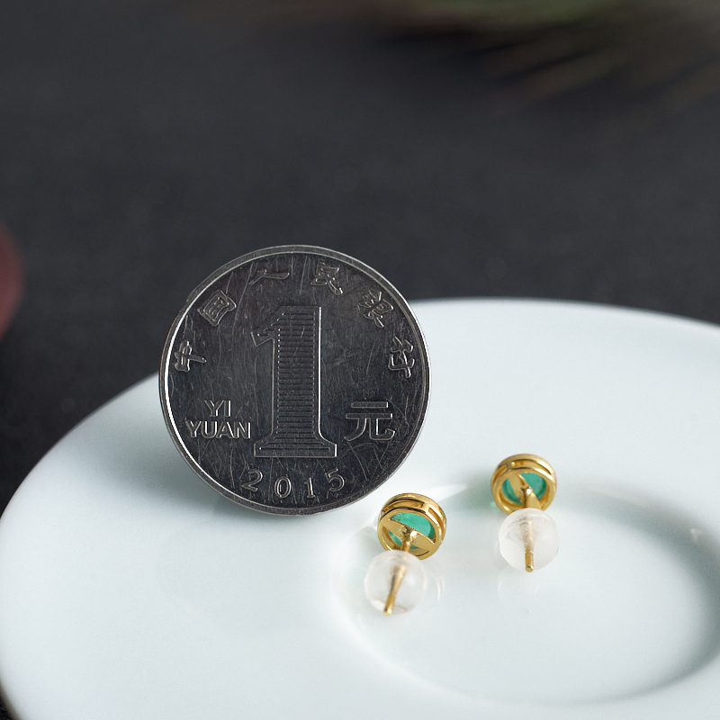 • [名  称] 18K鲜绿祖母绿圆形耳钉