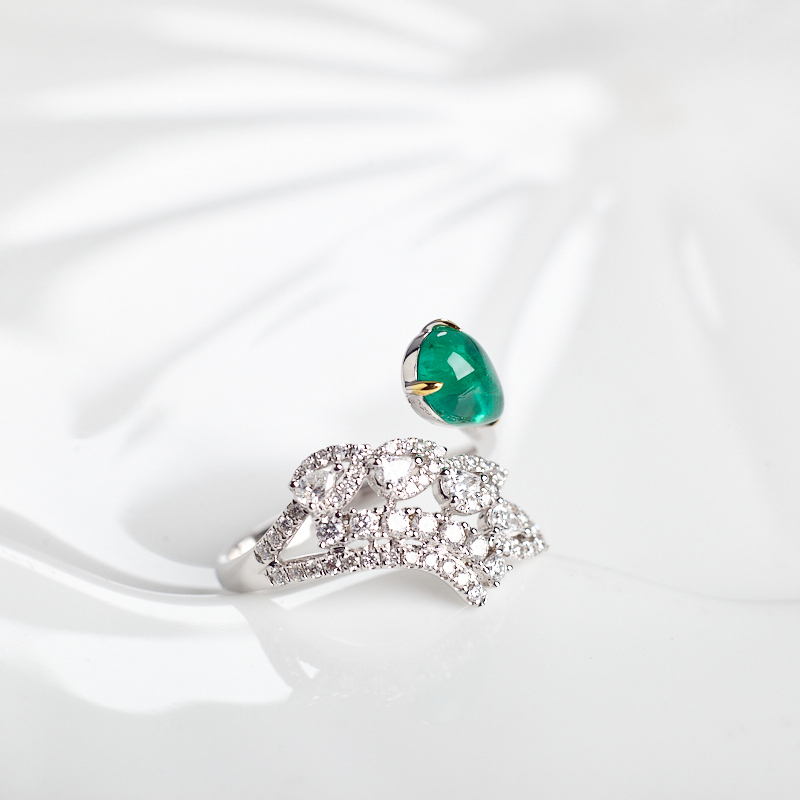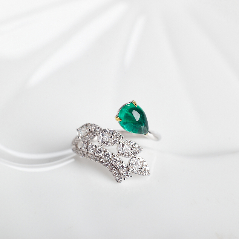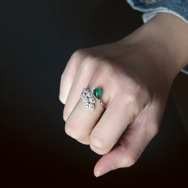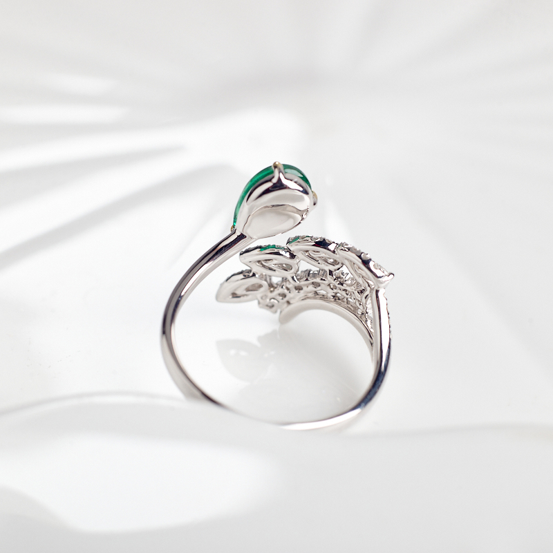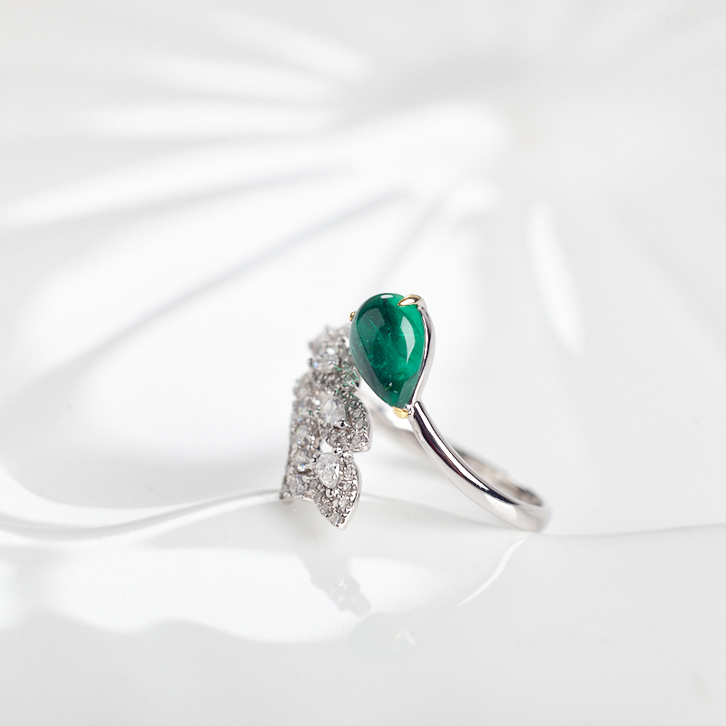 • [名  称] 18K鲜绿祖母绿水滴戒指