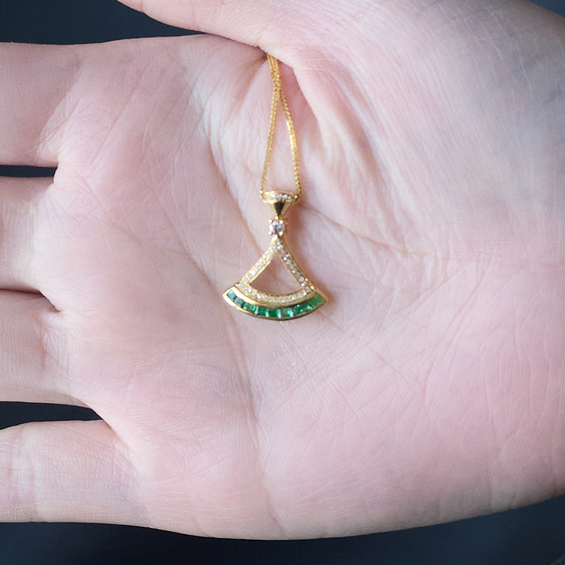 • 18K鲜绿祖母绿吊坠