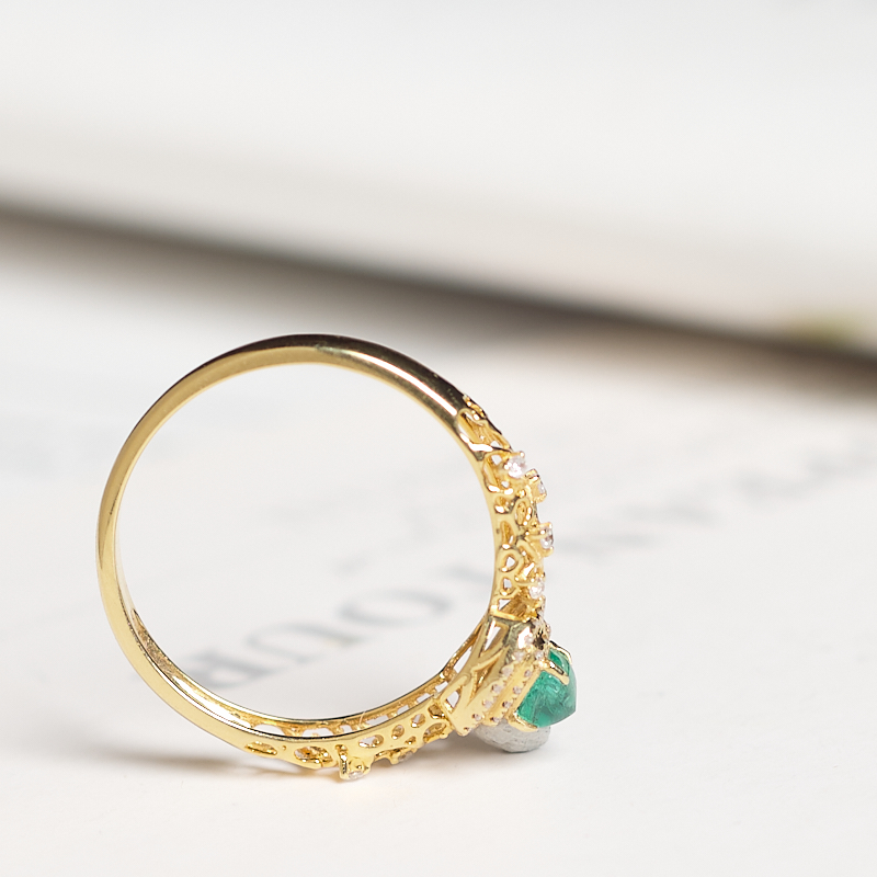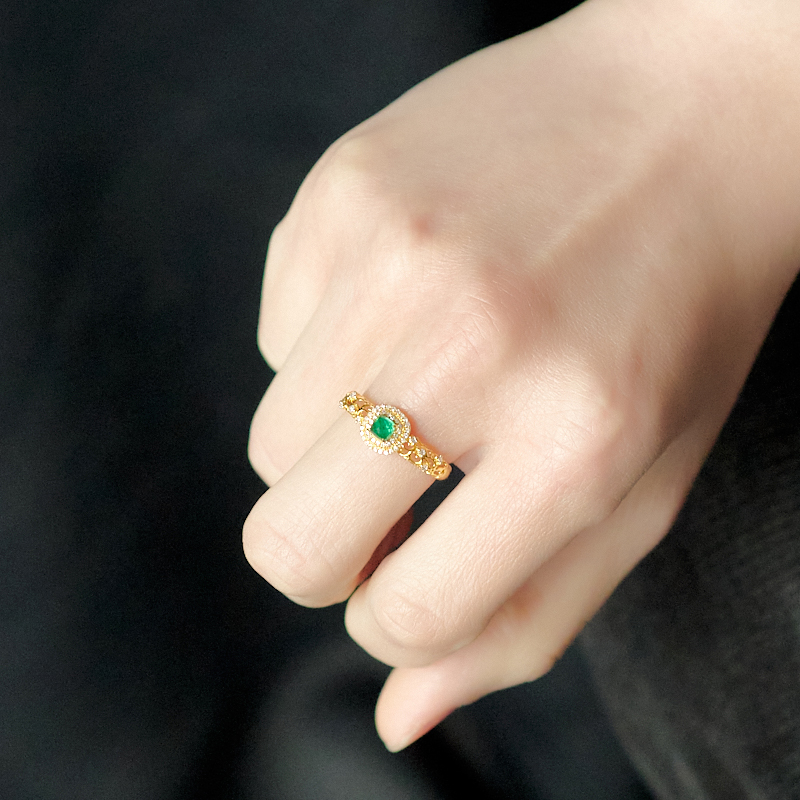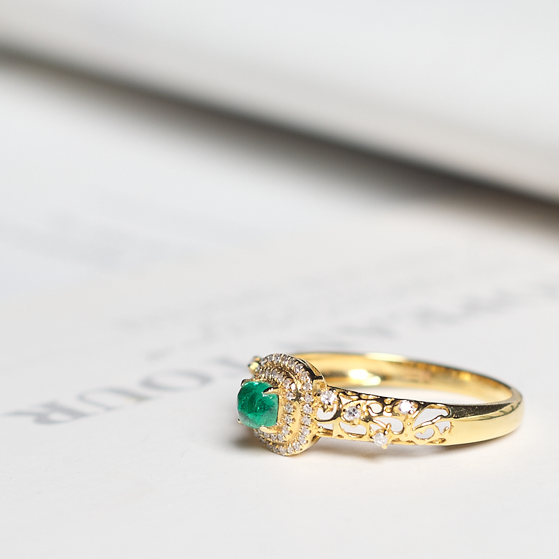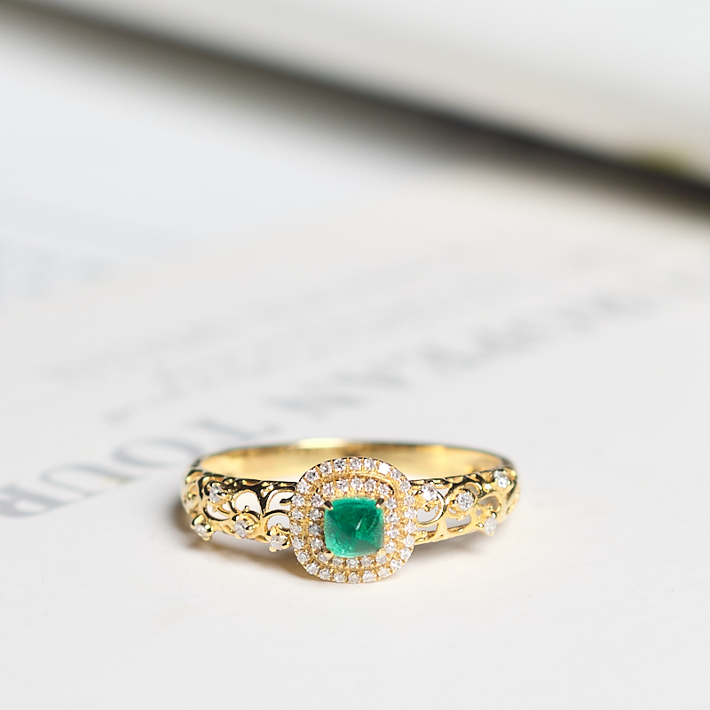 • [名  称] 18K鲜绿祖母绿方形戒指
